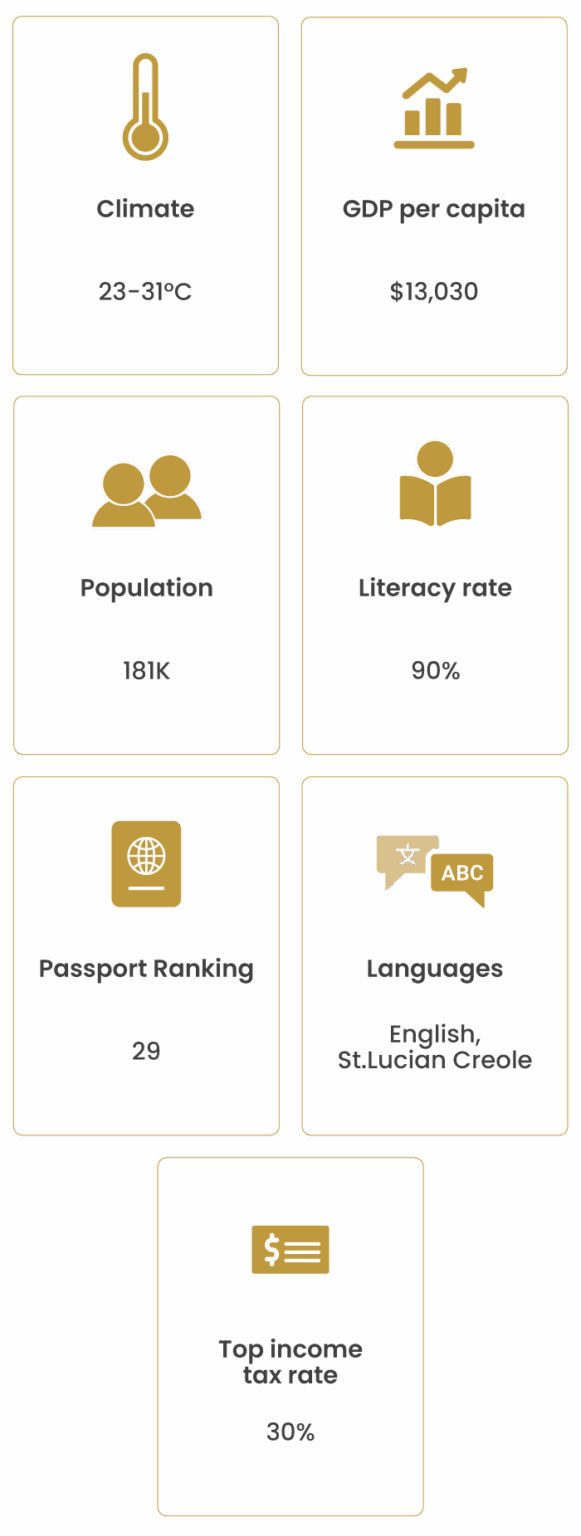 St Lucia is a country of adventure and inspiration, demonstrated by their slogan: “Let her inspire you”. The country’s diverse culture, beautiful landscapes and pleasant climate make it a desirable location for investors seeking citizenship in a peaceful, tropical paradise