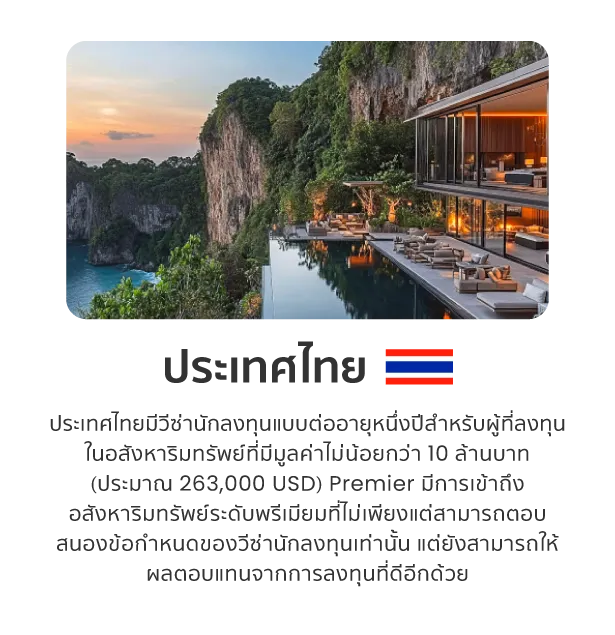 เรานำเสนออสังหาริมทรัพย์แบบ Off-plan, ที่อยู่อาศัย และ เชิงพาณิชย์ ที่เราเลือกสรรให้กับลูกค้าตามความต้องการ ไม่ว่าคุณจะมองหาบ้านพักตากอากาศที่สามารถใช้เป็นสินทรัพย์สร้างความมั่งคั่ง หรือกำลังมองหาผลตอบแทนเพื่อเพิ่มรายได้และความมั่นคง Premier ก็พร้อมที่จะดูแลคุณ บริการทั้งหมดของเรามีคำปรึกษาด้าน การวางแผนภาษี จากผู้เชี่ยวชาญที่มีประสบการณ์